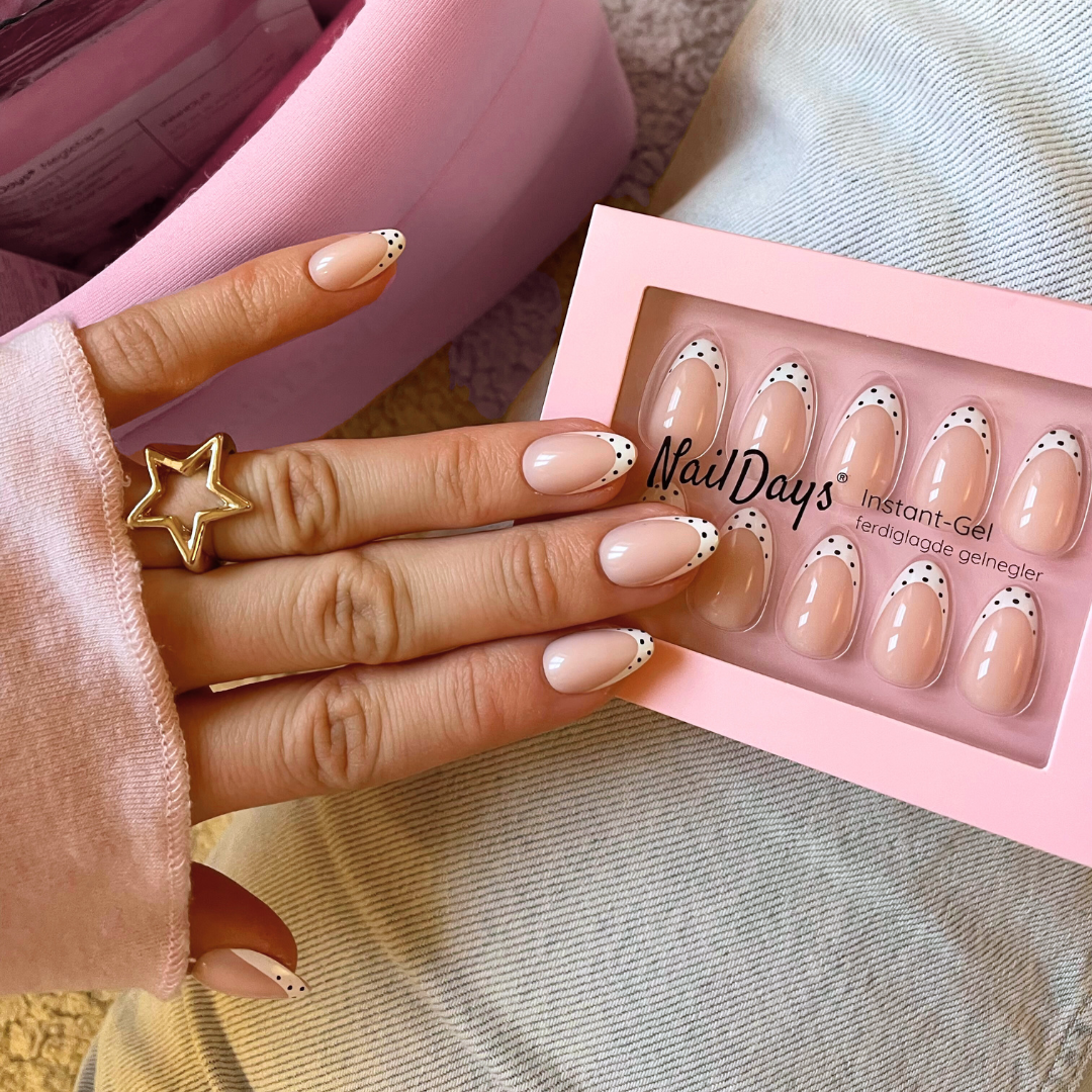 Avhengig av påsetting og bruk vil neglene holde i 2+ uker ved bruk av neglelim. Det er enkelt å sette på NailDays® løsnegler ved hjelp av neglelim.