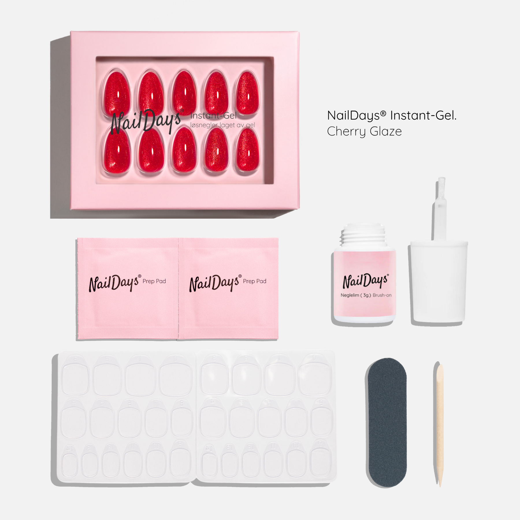 Avhengig av påsetting og bruk vil neglene holde i 2+ uker ved bruk av neglelim. Det er enkelt å sette på NailDays® løsnegler ved hjelp av neglelim.