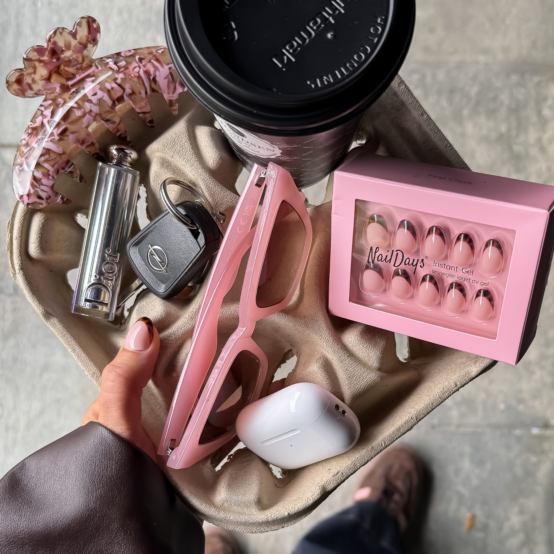 Avhengig av påsetting og bruk vil neglene holde i 2+ uker ved bruk av neglelim. Det er enkelt å sette på NailDays® løsnegler ved hjelp av neglelim.